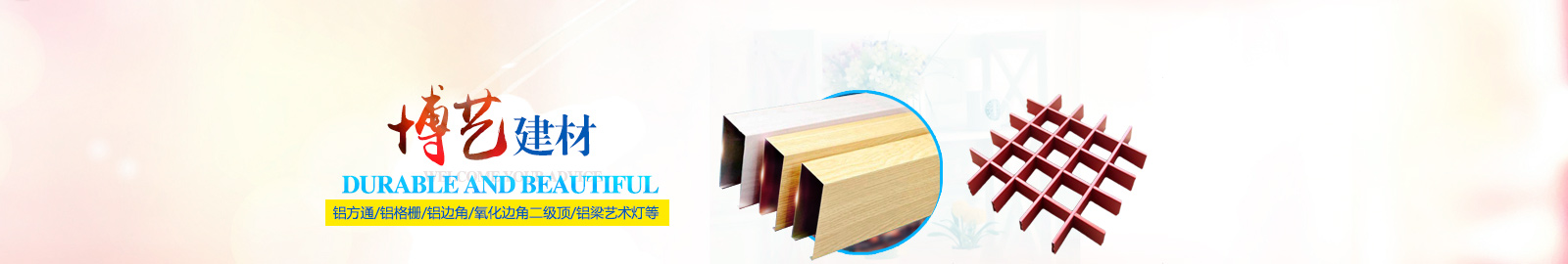 我們主營的產(chǎn)品有:鋁方通、鋁格柵、鋁邊角,鋁天花,氧化邊角和新型不銹鋼龍骨等。產(chǎn)品生產(chǎn)合格、標(biāo)準(zhǔn),具有防水、阻燃、吸音、抗老化、經(jīng)久耐用的特點,裝飾效果美觀、大方、是理想的環(huán)保裝飾材料。